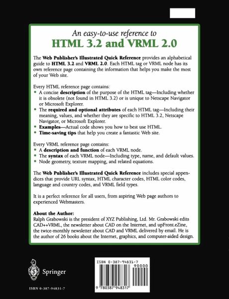 - Visual snapshots of each markup in use.- Each HTML tag is marked with its version number to highlight the new 3.0 features.- Covers all the known VRML tags for 2.0.- Examples cover related and optional attributes.