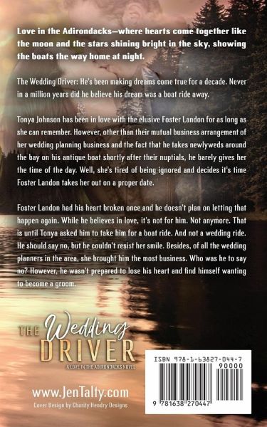 Love in the Adirondacks-where hearts come together like the moon and the stars shining bright in the sky, showing the boats the way home at night. The Wedding Driver: He's been making dreams come true for a decade. Never in a million years did he believe his dream was a boat ride away. Tonya Johnson has been in love with the elusive Foster Landon for as long as she can remember. However, other than their mutual business arrangement of her wedding planning business and the fact that he takes newlyweds around the bay on his antique boat shortly after their nuptials, he barely gives her the time…mehr