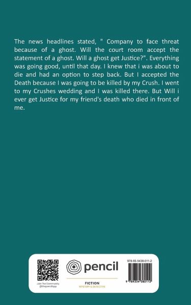The news headlines stated, " Company to face threat because of a ghost. Will the court room accept the statement of a ghost. Will a ghost get Justice?". Everything was going good, until that day. I knew that i was about to die and had an option to step back. But I accepted the Death because I was going to be killed by my Crush. I went to my Crushes wedding and I was killed there. But Will i ever get Justice for my friend's death who died in front of me.