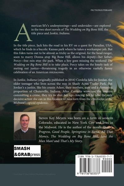 The Wedding on Big Bone Hill explores some underpinnings-and seamy undersides-of modern American life in its two short novels. In the title piece, Jack hits the road in his RV on a quest for Paradise, USA, which he finds in a bucolic Kansas park where he takes a workamper job. But this Eden turns out to be almost as tricky as the original, for the head ranger, soon to marry Donna atop Big Bone Hill, allows his deputy-her father, Percy-free rein over the park. Percy's convinced that everybody tries to get away with something, but that anyone allowed to get away with anything will try to get away with more, and he (if he alone) can see where that leads-he being the poster child for getting away with nothing. So when a boy goes missing the weekend The Wedding on Big Bone Hill is to take place, Percy takes on the lonely task of meting out justice-threatening tragedy in an otherwise ruefully funny celebration of an American microcosm. In Junkie, Indiana Cordelia falls for Jordan, the older teenager who lives across the way in Shady Acres Trailer Park. But Jordan's a junkie, like his cousin Adam, their mothers, aunts and a dismaying proportion of the town of Chuterville. After Cordelia witnesses the cousins committing a crime, they try to shut her up-forcing her to take the only decisive action she can in this bleakest of tales torn from the chronicles of the Midwest's opioid epidemic.