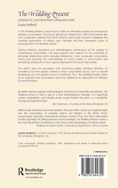 In this fascinating work, Louise Purbrick offers an alternative analysis of contemporary domestic consumption. She investigates the ritualized presentation of objects upon marriage, and their subsequent cycles of exchange within the domestic sphere. Focusing on gift-giving in Britain from 1945 to the present, comparative context is provided by material from North America and Europe. Presenting new material on the enactment of exchange relationships within everyday domesticity, the book makes significant historical, theoretical and methodological contributions to the analysis of contemporary consumption. It also re-evaluates consumption theory as well as examining the methodology of recent studies in consumption and domesticity, pressing for a more rigorous approach to the use of case studies. By considering how the specific contexts in which consumption occurs, such as married domesticity, can limit possible versions of selfhood, The Wedding Present tests the assumption that consuming creates individual identities. Thus, the book argues, consumption cannot be isolated as an explanation of individual or social formation.