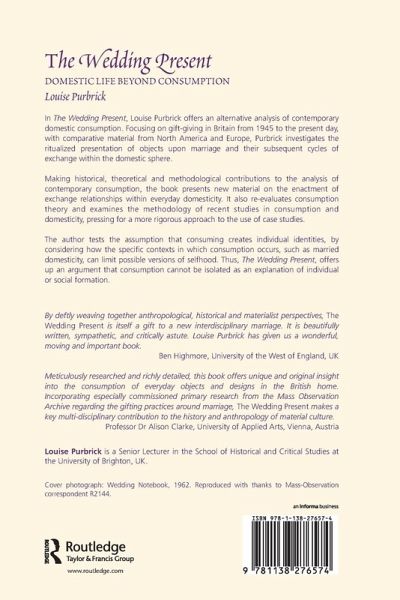 In this fascinating work, Louise Purbrick offers an alternative analysis of contemporary domestic consumption. She investigates the ritualized presentation of objects upon marriage, and their subsequent cycles of exchange within the domestic sphere. Focusing on gift-giving in Britain from 1945 to the present, comparative context is provided by material from North America and Europe. Presenting new material on the enactment of exchange relationships within everyday domesticity, the book makes significant historical, theoretical and methodological contributions to the analysis of contemporary consumption. It also re-evaluates consumption theory as well as examining the methodology of recent studies in consumption and domesticity, pressing for a more rigorous approach to the use of case studies. By considering how the specific contexts in which consumption occurs, such as married domesticity, can limit possible versions of selfhood, The Wedding Present tests the assumption that consuming creates individual identities. Thus, the book argues, consumption cannot be isolated as an explanation of individual or social formation.