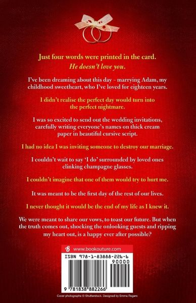 Just four words were printed in the card. He doesn't love you. I've been dreaming about this day - marrying Adam, my childhood sweetheart, who I've loved for eighteen years. I didn't realise the perfect day would turn into the perfect nightmare. I was so excited to send out the wedding invitations, carefully writing everyone's names on thick cream paper in beautiful cursive script. I had no idea I was inviting someone to destroy our marriage. I couldn't wait to say 'I do' surrounded by loved ones clinking champagne glasses. I couldn't imagine that one of them would try to hurt me. It was meant to be the first day of the rest of our lives. I never thought it would be the end of my life as I knew it. We were meant to share our vows, to toast our future. But when the truth comes out, shocking the onlooking guests and ripping my heart out, is a happy ever after possible? A completely gripping and totally addictive read that will get your blood pressure rising and send shivers down your spine. Fans of Date Night, The Sister-in-Law and The Girl on the Train will devour this twisty, dark and gasp-worthy page-turner in one swift gulp! Readers absolutely love Ruth Heald: 'Whoa!!! I stayed up till 6am reading this book! I needed to know the ending! This book was TWISTED... Jaw-dropping.' Goodreads Reviewer, ¿¿¿¿¿ 'OMG... LITERALLY BLEW MY MIND AWAY!!... Ruth's writing had me enslaved, tapping away at the pages.' Goodreads Reviewer, ¿¿¿¿¿ 'Wow, what a story... Utterly hooked from page one, so glad it was a weekend and I could binge read!... An absolute must-read!! 5 huge stars from me.' Goodreads Reviewer, ¿¿¿¿¿