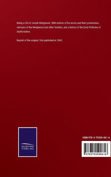 Reprint of the original, first published in 1865. Being a Life of Josiah Wedgwood. With notices of his works and their productions, memoirs of the Wedgwood and other families, and a history of the Early Potteries of Staffordshire.
