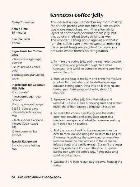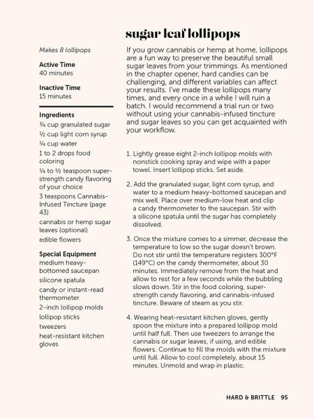 Create delicious cannabis confections with this user-friendly guide to making THC- and CBD-infused gummies, jellies, soft caramels, hard candies, and more delicious edibles! Create delicious cannabis confections with this user-friendly guide to making THC- and CBD-infused gummies, jellies, soft caramels, hard candies, and more delicious edibles! Winner of a 2022 GDUSA Design Award™ Homemade edibles are cost-effective, discreet, and delicious! This practical cookbook is the go-to resource for the cannabis curious of all levels and offers approachable ways to incorporate a variety of cannabinoids into your routine. With step-by-step instructions and color photos, you'll also get pro tips for safely handling and labeling your confections. Get inspired to create your own special gummies and candies that are even better than your average dispensary-bought treats! Inside you'll find weed-infused recipes like: * Sour Green Apple Gummies * Lavender Chamomile Sleep Gummies * Mocha Caramels * Honey Elderberry Lozenges * And More! Take your cannabis cooking skills to the next level with this ultimate cookbook.