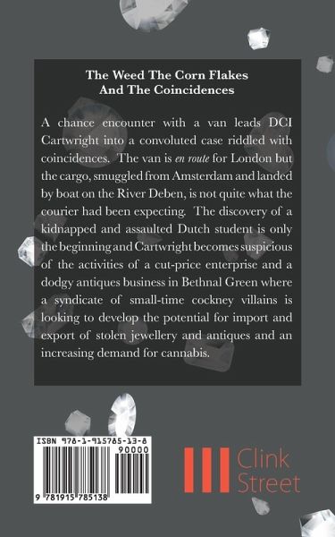 A chance encounter with a van leads DCI Cartwright into a convoluted case riddled with coincidences. The van is en route for London but the cargo, smuggled from Amsterdam and landed by boat on the River Deben, is not quite what the courier had been expecting. The discovery of a kidnapped and assaulted Dutch student is only the beginning and Cartwright becomes suspicious of the activities of a cut-price enterprise and a dodgy antiques business in Bethnal Green where a syndicate of small-time cockney villains is looking to develop the potential for import and export of stolen jewellery and antiques and an increasing demand for cannabis.