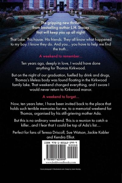 Pre-order the gripping new thriller from bestselling author L.H. Stacey! It will keep you up all night! 'Dark and dramatic, with an explosive ending' Diane Saxon 'The plot twists kept me guessing right until the end' ⭐️⭐️⭐️⭐️⭐️ That Lake. This house. His friends. They all know what happened to my boy. I know they do. And you... you have to help me find the truth... A weekend to remember... Ten years ago, deeply in love, I would have done anything for Thomas Kirkwood. But on the night of our graduation, fuelled by drink and drugs, Thomas's lifeless body was found floating in the Kirkwood family…mehr