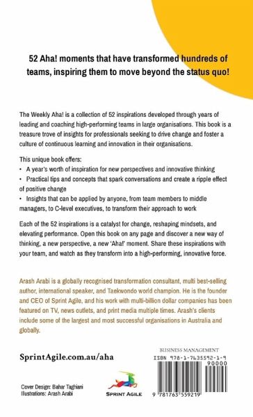 52 Aha! moments that have transformed hundreds of teams, inspiring them to move beyond the status quo! The Weekly Aha! is a collection of 52 inspirations developed through years of leading and coaching high-performing teams in large organisations. This book is a treasure trove of insights for professionals seeking to drive change and foster a culture of continuous learning and innovation in their organisations. This unique book offers: A year's worth of inspiration for new perspectives and innovative thinkingPractical tips and concepts that spark conversations and create a ripple effect of positive changeInsights that can be applied by anyone, from team members to middle managers, to C-level executives, to transform their approach to work Each of the 52 inspirations is a catalyst for change, reshaping mindsets, and elevating performance. Open this book on any page and discover a new way of thinking, a new perspective, a new 'Aha!' moment. Share these inspirations with your team, and watch as they transform into a high-performing, innovative force.