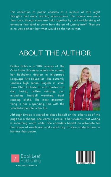 This collection of poems consists of a mixture of late night thoughts and early morning observations. The poems are each their own, though some are held together by an invisible string of emotions that tend to come from the art of writing itself. They are in no way perfect, but what would be the fun in that.