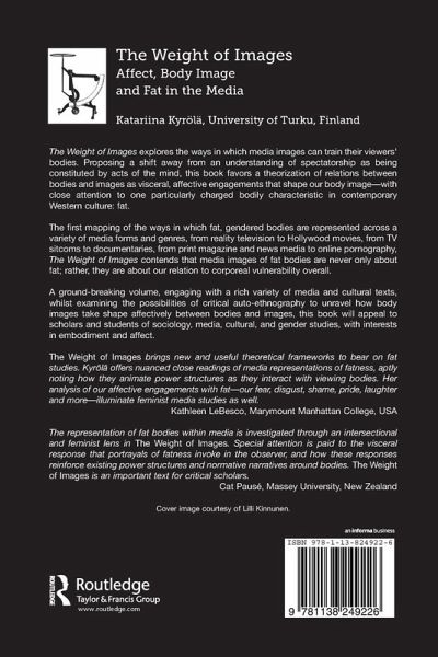The Weight of Images explores the ways in which media images can train their viewers' bodies. Proposing a shift away from an understanding of spectatorship as being constituted by acts of the mind, this book favours a theorization of relations between bodies and images as visceral, affective engagements that shape our body image - with close attention to one particularly charged bodily characteristic in contemporary western culture: fat. The first mapping of the ways in which fat, gendered bodies are represented across a variety of media forms and genres, from reality television to Hollywood movies, from TV sitcoms to documentaries, from print magazine and news media to online pornography, The Weight of Images contends that media images of fat bodies are never only about fat; rather, they are about our relation to corporeal vulnerability overall. A ground-breaking volume, engaging with a rich variety of media and cultural texts, whilst examining the possibilities of critical auto-ethnography to unravel how body images take shape affectively between bodies and images, this book will appeal to scholars and students of sociology, media, cultural and gender studies, with interests in embodiment and affect.