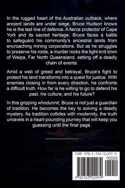 In the rugged heart of the Australian outback, where ancient lands are under siege, Bruce Hudson knows he is the last line of defence. A fierce protector of Cape York and its sacred heritage, Bruce faces a battle to safeguard his ancestral lands from encroaching mining corporations. But, as he struggles to preserve his roots, a murder rocks the tight-knit town of Weipa, Far North Queensland, setting off a deadly chain of events. Amid a web of greed and betrayal, Bruce's fight to protect his land transforms into a quest for justice. With enemies closing in from every direction, he confronts a difficult truth. How far is he willing to go to defend his past, his culture and his future? As tradition collides with modernity, the truth unravels in a heart-pounding journey that will keep you guessing until the final page.