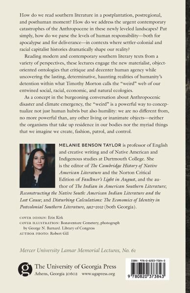"How do we read southern literature in a postplantation, postregional, and posthuman moment? How do we address the urgent contemporary catastrophes of the Anthropocene in these newly leveled landscapes? Put simply, how do we parse the levels of human responsibility--both for apocalypse and for deliverance--in contexts where settler-colonial and racial capitalist histories dramatically shape our reality? Reading modern and contemporary southern literary texts from a variety of perspectives, these lectures engage the new materialist, object-oriented ontologies that critique and decenter human agency while uncovering the lasting, determinative, haunting realities of humanity's detention within what Timothy Morton calls the "weird" web of our entwined social, racial, economic, and natural ecologies. As a concept in the burgeoning conversation about Anthropocenic disaster and climate emergency, the "weird" is a powerful way to conceptualize not just human hubris but also humility: we are no different from, no more powerful than, any other living or inanimate objects-neither the organisms that take up residence in our bodies nor the myriad things that we imagine we create, fashion, patrol, and control"--