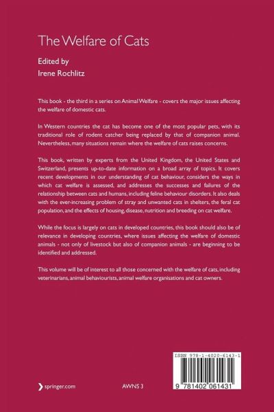 "This is the third volume of a series that addresses animal welfare from a species perspective. ... it will be of particular interest to veterinarians, cattery and shelter managers, anyone involved with cats used in research, and policymakers responsible for cat populations and their impacts on society and the environment." (Julie Levy, Quarterly Review of Biology, Vol. 82, June, 2007)