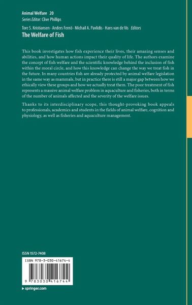 This book investigates how fish experience their lives, their amazing senses and abilities, and how human actions impact their quality of life. The authors examine the concept of fish welfare and the scientific knowledge behind the inclusion of fish within the moral circle, and how this knowledge can change the way we treat fish in the future. In many countries fish are already protected by animal welfare legislation in the same way as mammals, but in practice there is still a major gap between how we ethically view these groups and how we actually treat them. The poor treatment of fish represents a massive animal welfare problem in aquaculture and fisheries, both in terms of the number of animals affected and the severity of the welfare issues.