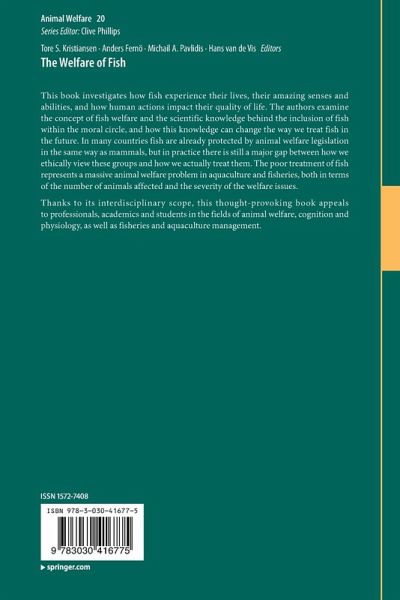 This book investigates how fish experience their lives, their amazing senses and abilities, and how human actions impact their quality of life. The authors examine the concept of fish welfare and the scientific knowledge behind the inclusion of fish within the moral circle, and how this knowledge can change the way we treat fish in the future. In many countries fish are already protected by animal welfare legislation in the same way as mammals, but in practice there is still a major gap between how we ethically view these groups and how we actually treat them. The poor treatment of fish represents a massive animal welfare problem in aquaculture and fisheries, both in terms of the number of animals affected and the severity of the welfare issues.