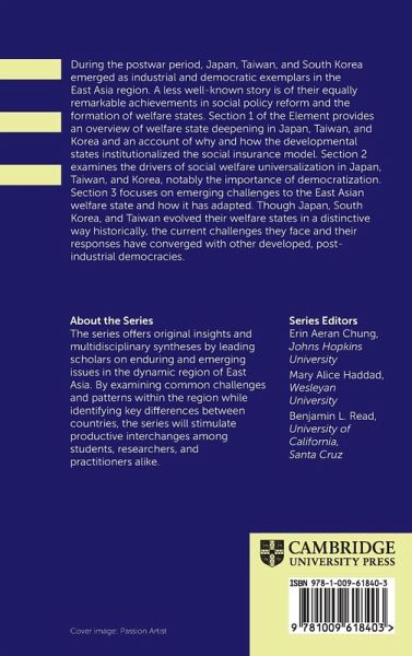 During the postwar period, Japan, Taiwan and South Korea emerged as industrial and democratic exemplars in the East Asia region. A less well-known story is of their equally remarkable achievements in social policy reform and the formation of welfare states. Section 1 of the Element provides an overview of welfare state deepening in Japan, Taiwan and Korea and an account of why and how the developmental states institutionalized the social insurance model. Section 2 examines the drivers of social welfare universalization in Japan, Taiwan and Korea, notably the importance of democratization. Section 3 focuses on emerging challenges to the East Asian welfare state and how it has adapted. Though Japan, South Korea and Taiwan evolved their welfare states in a distinctive way historically, the current challenges they face and their responses have converged with other developed, post-industrial democracies.