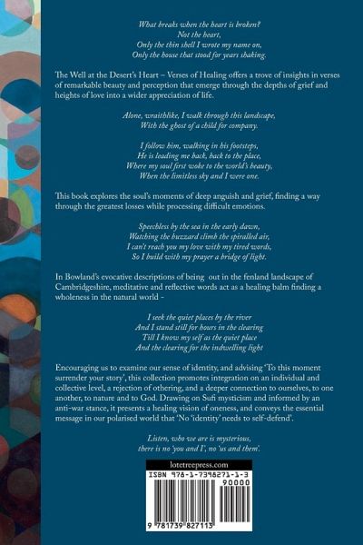 What breaks when the heart is broken?Not the heart,Only the thin shell I wrote my name on,Only the house that stood for years shaking. The Well at the Desert's Heart - Verses of Healing offers a trove of insights in verses of remarkable beauty and perception that emerge through the depths of grief and heights of love into a wider appreciation of life. Alone, wraithlike, I walk through this landscape,With the ghost of a child for company. I follow him, walking in his footsteps,He is leading me back, back to the place,Where my soul first woke to the world's beauty,When the limitless sky and I were one. This book explores the soul's moments of deep anguish and grief, finding a way through the greatest losses while processing difficult emotions. Speechless by the sea in the early dawn,Watching the buzzard climb the spiralled air,I can't reach you my love with my tired words,So I build with my prayer a bridge of light. In Bowland's evocative descriptions of being out in the fenland landscape of Cambridgeshire, meditative and reflective words act as a healing balm finding a wholeness in the natural world - I seek the quiet places by the riverAnd I stand still for hours in the clearingTill I know my self as the quiet placeAnd the clearing for the indwelling light Encouraging us to examine our sense of identity, and advising 'To this moment surrender your story', this collection promotes integration on an individual and collective level, a rejection of othering, and a deeper connection to ourselves, to one another, to nature and to God. Drawing on Sufi mysticism and informed by an anti-war stance, it presents a healing vision of oneness, and conveys the essential message in our polarised world that 'No 'identity' needs to self-defend'. Listen, who we are is mysterious,there is no 'you and I', no 'us and them'.