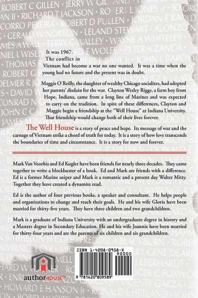 It was 1967. The conflict in Vietnam had become a war no one wanted. It was a time when the young had no future and the present was in doubt. Maggie O'Reilly, the daughter of wealthy Chicago socialites, had adopted her parents' disdain for the war. Clayton Wesley Riggs, a farm boy from Hope, Indiana, came from a long line of Marines and was expected to carry on the tradition. In spite of these differences, Clayton and Maggie begin a friendship at the "Well House" at Indiana University. That friendship would change both of their lives forever. The Well House is a story of peace and hope. Its message of war and the carnage of Vietnam strike a chord of truth for today. It is a story of how love transcends the boundaries of time and circumstance. It is a story for now and forever.