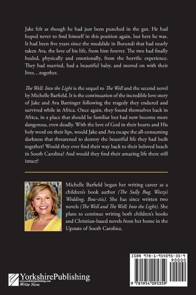 Jake felt as though he had just been punched in the gut. He had hoped never to find himself in this position again, but here he was. It had been five years since the mudslide in Burundi that had nearly taken Ava, the love of his life, from him forever. The two had finally healed, physically and emotionally, from the horrific experience. They had married, had a beautiful baby, and moved on with their lives...together. The Well: Into the Light is the sequel to The Well and the second novel by Michelle Barfield. It is the continuation of the incredible love story of Jake and Ava Barringer following the tragedy they endured and survived while in Africa. Once again, they find themselves back in Africa, in a place that should be familiar but had now become more dangerous, even deadly. With the love of God in their hearts and His holy word on their lips, would Jake and Ava escape the all-consuming darkness that threatened to destroy the beautiful life they had built together? Would they ever find their way back to their beloved beach in South Carolina? And would they find their amazing life there still intact?