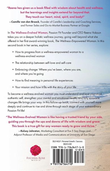 In The Wellness-Evolved Woman, Passion Fit Founder and CEO Reena Vokoun takes you on a deeper holistic wellness journey, going well beyond what she offered in her first award-winning book, The Wellness-Empowered Woman. In this second book in her series, explore: How to progress from a wellness-empowered woman to a wellness-evolved woman The relationship between self-love and self-care Embracing change: Where you've been, where you are, and where you're going How to find meaning in personal life experiences Your mission and how it fits with the story of your life To become a wellness-evolved woman you must understand and love your most authentic self, strengthen your mental and emotional health, and fully embrace changes life brings your way. In this follow-up book, connect with yourself more deeply and continue to rise and shine through each stage of your extraordinary Passion Fit life! "Reena has given us a book filled with wisdom about health and wellness, but the learnings and insights extend far beyond that. They touch our heart, mind, spirit, and body! Reena shares how to live a Passion Fit life, a life that is consistently aligning wellness to one's values and personal mission. In addition to giving readers an inspiring book, she also gives us a practical one. Each chapter ends with self-reflection questions to support the reader's journey to truly living a wellness-evolved life." -Camille van den Broeck, Founder of Camille's Leadership and Coaching Services, and Former Sales and Go-to-Market Business Partner at Google "I'm truly honored to call Reena a friend and colleague! She has contributed to our Emmy-nominated lifestyle and entertainment show by bringing her incredible knowledge, when it comes to health and wellness, to the table. This book has so much to offer women who want practical advice to improve their lives!" -Ashley Jacobs, TV Host of Fox 5 San Diego's The LOCAList SD "The Wellness-Evolved Woman inspired me to look into my own journey of self-love and self-care. It offers practical tips for women to build a stronger connection with themselves. In the last year, I have learned to accept change through a new job, and Reena's next book encouraged me to think about my past, present challenges, and future goals. The Wellness-Evolved Woman teaches us to find significance in our life experiences, helping us discover our unique purposes." -Kathleen Ferguson, Founder and CEO of Coach360 "The Wellness-Evolved Woman is like having a trusted friend by your side, guiding you through the ups and downs of life with wisdom and grace. This book is a true gift for any woman ready to grow and thrive." -Kelsey Johnston, Marketing Consultant at Fox 5 San Diego and Adjunct Professor of Media and Communications at University of San Diego