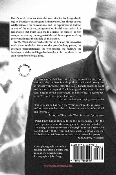 Peter Finch has long been a significant figure in Welsh-poetry-in-English and a busy editor and publisher. The Welsh Poems, a title which pays homage to poet John James, is a survey of his more experimental work from the past two decades, including visual work, sound poems, and a number of playful texts that riff on language, grammar and typography. The Welsh language seeps into Finch's work at all levels, sometimes penetrating the poems to the core, and at other times held at arm's length.