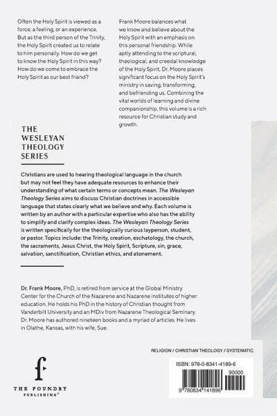 Often the Holy Spirit is viewed as a force, a feeling, or an experience. But as the third person of the Trinity, the Holy Spirit created us to relate to him personally. How do we get to know the Holy Spirit in this way? How do we come to embrace the Holy Spirit as our best friend? Frank Moore balances what we know and believe about the Holy Spirit with an emphasis on this personal friendship. While aptly attending to the scriptural, theological, and creedal knowledge of the Holy Spirit, Dr. Moore places significant focus on the Holy Spirit's ministry in saving, transforming, and befriending us. Combining the vital worlds of learning and divine companionship, this volume is a rich resource for Christian study and growth. Christians are used to hearing theological language in the church but may not feel they have adequate resources to enhance their understanding of what certain terms or concepts mean. The Wesleyan Theology Series aims to discuss Christian doctrines in accessible language that states clearly what we believe and why. Each volume is written by an author with a particular expertise who also has the ability to simplify and clarify complex ideas. The Wesleyan Theology Series is written specifically for the theologically curious layperson, student, or pastor. Topics include: the Trinity, creation, eschatology, the church, the sacraments, Jesus Christ, the Holy Spirit, Scripture, sin, grace, salvation, sanctification, Christian ethics, and atonement.