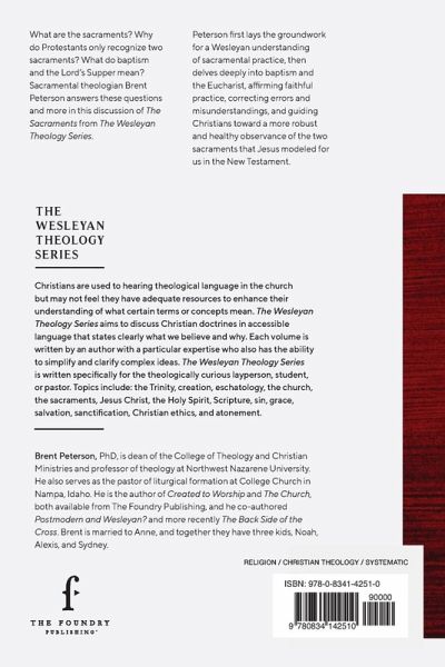 What are the sacraments? Why do Protestants only recognize two sacraments? What do baptism and the Lord's Supper mean? Sacramental theologian Brent Peterson answers these questions and more in this discussion of The Sacraments from The Wesleyan Theology Series. Peterson first lays the groundwork for a Wesleyan understanding of sacramental practice, then delves deeply into baptism and the Eucharist, affirming faithful practice, correcting errors and misunderstandings, and guiding Christians toward a more robust and healthy observance of the two sacraments that Jesus modeled for us in the New Testament. Christians are used to hearing theological language in the church but may not feel they have adequate resources to enhance their understanding of what certain terms or concepts mean. The Wesleyan Theology Series aims to discuss Christian doctrines in accessible language that states clearly what we believe and why. Each volume is written by an author with a particular expertise who also has the ability to simplify and clarify complex ideas. The Wesleyan Theology Series is written specifically for the theologically curious layperson, student, or pastor. Topics include: the Trinity, creation, eschatology, the church, the sacraments, Jesus Christ, the Holy Spirit, Scripture, sin, grace, salvation, sanctification, Christian ethics, and atonement.