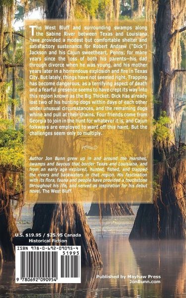 The West Bluff and surrounding swamps along the Sabine River between Texas and Louisiana have provided a modest but comfortable shelter and satisfactory sustenance for Robert Andrew ("Dick") Jackson and his Cajun sweetheart, Penny, for many years since the loss of both his parents—his dad through divorce when he was young, and his mother years later in a horrendous explosion and fire in Texas City. But lately, things have not seemed right. Trapping has become dangerous, as a terrifying aspect of death and a fearful presence seems to have crept its way into this region known as the Big Thicket. Dick has already lost two of his hunting dogs within days of each other under unusual circumstances, and the remaining dogs whine and pull at their chains. Four friends come from Georgia to join in the hunt for whatever it is, and Cajun folkways are employed to ward off this haint. But the challenges seem only to multiply.