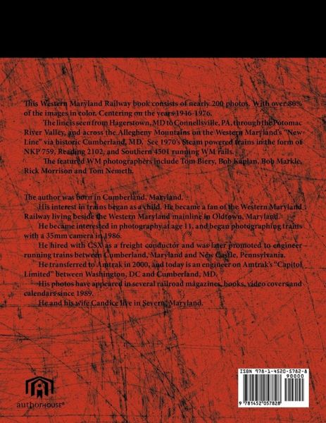 This book is a pictorial history looking back at the Western Maryland Railway through black and white photos during its glory years of operations in the 1950s, to its final years of pre-consolidation in the 1970s through color photography. It also takes a look at the railroad more than a decade after its merger into the Chessie System. We will also review a brief history on the "Queen City" (Cumberland, Maryland), as well as the Chesapeake & Ohio Canal.