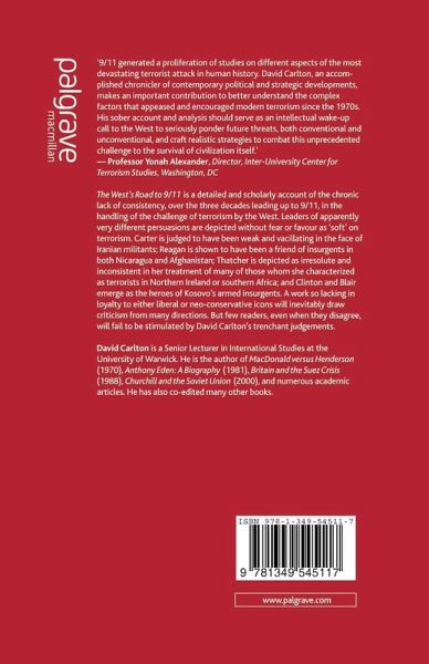 '9/11 generated a proliferation of studies on different aspects of the most devastating terrorist attack in human history. David Carlton, an accomplished chronicler of contemporary political and strategic developments, makes an important contribution to better understand the complex factors that appeased and encouraged modern terrorism since the 1970s. His sober account and analysis should serve as an intellectual wake-up call to the West to seriously ponder future threats, both conventional and unconventional, and craft realistic strategies to combat this unprecedented challenge to the survival of civilization itself.' - Professor Yonah Alexander, Director, Inter-University Centre for Terrorism Studies, USA