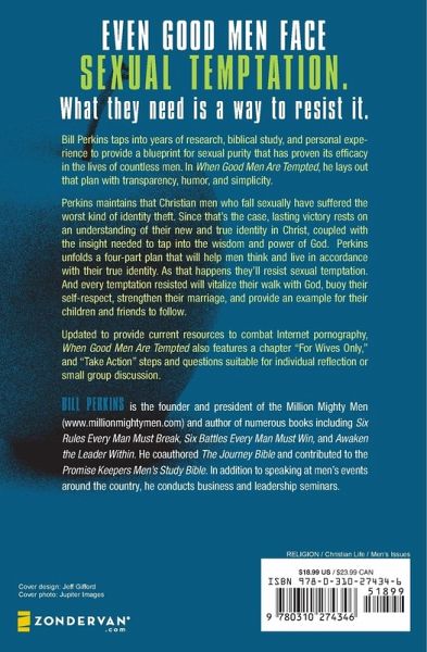 Men know all about their need for sexual purity. What they want is a plan that will enable them to attain it. In the midst of a culture that shouts "Sex!" from every corner, men need a friend to talk honestly about how to master lust and achieve control over this crucial area of their lives.Bill Perkins details a proven biblical strategy for sexual integrity. He shows men how to achieve a purity that will flow from their relationship with God and strengthen their self-respect, the sanctity of their marriage, and the security of their families. Perkins unfolds a three-part plan that will lead men to victory.Updated to address current needs and cultural trends, When Good Men Are Tempted includes the latest information on Internet pornography. It also features "Take Action" strategic steps and questions suitable for individual reflection or discussion in small groups.