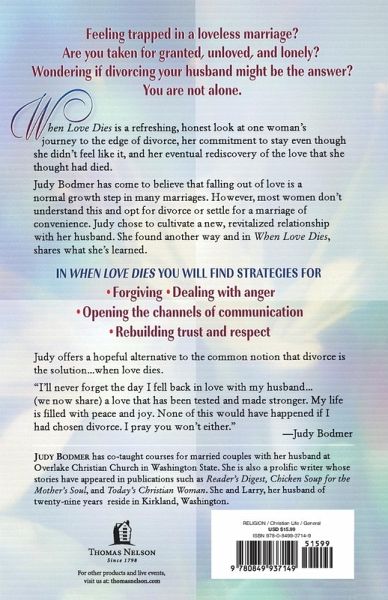 When Love Dies is a refreshing, honest look at one woman's journey to the edge of divorce, her commitment to stay even though she didn't feel like it, and eventual rediscovery of the love that she thought died.