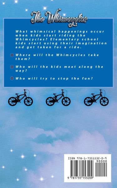 What whimsical happenings occur when kids start riding the Whimcycles? Elementary school kids start using their imagination and get taken for a ride. Where will the Whimcycles take them? Who will the kids meet along the way? Who will try to stop the fun? How do they find a place to ride? Take your ride with The Whimcycles and find the fun!