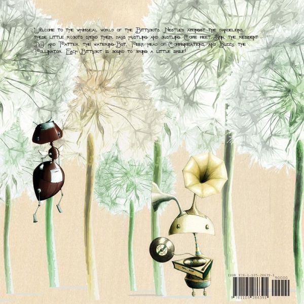 Welcome to the whimsical world of the Bittybots. Nestled amongst the dandelions, these little robots spend their days hustling and bustling. Come meet Spin, the resident DJ, and Patter, the watering-Bot, Peep, head of Communications, and Buzzy, the Pollinator. Each Bittybot is bound to bring a little smile!