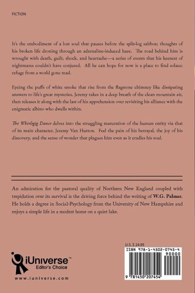 It's the embodiment of a lost soul that pauses before the split-log saltbox; thoughts of his broken life droning through an adrenaline-induced haze. The road behind him is wrought with death, guilt, shock, and heartache-a series of events that his keenest of nightmares couldn't have conjured. All he can hope for now is a place to fi nd solace; refuge from a world gone mad. Eyeing the puff s of white smoke that rise from the flagstone chimney like dissipating answers to life's great mysteries, Jeremy takes in a deep breath of the clean mountain air, then releases it along with the last of his apprehension over revisiting his alliance with the enigmatic albino who dwells within. The Whirligig Dance delves into the struggling maturation of the human entity via that of its main character, Jeremy Van Hutton. Feel the pain of his betrayal, the joy of his discovery, and the sense of wonder that plagues him even as it cradles his soul.