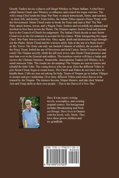 Greedy Traders devise a plan to sell illegal Whiskey to Plains Indians. A rebel brave called Storm Cloud, uses Whiskey to influence and control his rogue warriors. The wild young Chief sends his large War Party to attack homesteads, farms, and ranches, - to steal, kill, and destroy! Years before, the Indian Tribes signed a Peace Treaty with the Government. Storm Cloud wants to break the Peace and start a War! The War Party attack homes, towns, and a Wagon Train. Settlers and townsfolk are alarmed and terrified as fires burn across the Plains. The Ninjans capture Storm Cloud and present him to the Council of Chiefs for judgement. The Indian Chiefs decide to turn Storm Cloud over to the Government to account for his crimes. While transporting the rogue Chief, War Party braves set him free. Once again, death and destruction reign throughout the Plains. Storm Cloud and his warriors safely hide at the top of a Butte known as Sky Tower. The Army can only use limited Columns of soldiers, the accords of the Peace Treaty forbid the use of Howitzers and field Canon. Storm Cloud is beyond reach! The Ninjans secretly climb the tall rock tower, take Storm Cloud prisoner, and turn him over to the General and soldiers. The heartless warrior will face a Judge and receive the Ultimate Sentence. Meanwhile, unscrupulous Traders sell Whiskey to a small innocent Tribe. The results are devastating! The Ninjans are sent to restore and rebuild the little Tribe. The young braves who ran away from the different Tribes to join Storm Cloud, begin to return home. The Chiefs and Elders do not know how to handle them. Calls are sent out asking for help. Teams of Ninjans go to Indian Villages to mentor and give leadership. Over time, different Tribes send select braves to be trained by the Ninjans. The trainees become Ninjan Masters, and take their Martial Arts and Ninja skills to their own people. - This is the Dawn of a New Day!