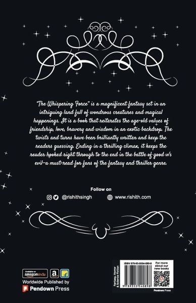 ''The Whispering Force'' is a magnificent fantasy set in an intriguing land full of wondrous creatures and magical happenings. It is a book that reiterates the age-old values of friendship, love, bravery and wisdom in an exotic backdrop. The twists and turns have been brilliantly written and keep the readers guessing. Ending in a thrilling climax, it keeps the reader hooked right through to the end in the battle of good v/s evil-a must-read for fans of the fantasy and thriller genre. Rishith Singh is currently doing his IGCSE A level in Computer Science and English. He was inspired to write his first book, "The Whispering Force" out of his love for reading. He loves travelling, and when he is not writing, he likes reading Harry Potter books, watching Marvel movies, or playing Mario Kart.