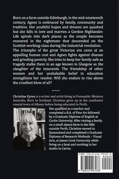 The White Apron by Christine Eyres is a powerful novel of that tells the story of Agnes and her life as a working-class woman in Vuctorian Scotland. Young Aggie's life is secure with her family in a village on the outskirts of Edinburgh. She thrives at school and has ambitions above her station but her hopes crumple when she is forced to leave school to work as a maid. Although Agnes has vowed never to marry, she becomes enchanted by a young soldier. William, newly returned from defending Queen Victoria's Indian Empire is garrisoned in Edinburgh Castle. Agnes's protestant family disapprove of her match to the catholic son of an Irish tinker. After their marriage, William pensioned off by the army with an eye disease contracted in India, reluctantly returns to his familly's trade of shoemaking. He sinks into depression and the dram shops. The death of a child prompts the family to move to central Scotland where life improves. But tragedy strikes again. It is the height of the Industrial Revolution when children are born but often die in an age known as the slaughter of the innocents. Rescillience is tested when they move to the squalor of Glasgow, and Agnes fights fot the survival of her family. The friendship of other women and her faith in education sustain her, despite widowhood and the threat of the poorhouse. Agnes discovers the mystery of the disappearance of her daughter's best friend. She finds young women with consuption, banished from their slum homes to protect the breadwinners from infection. She knows she must help these young women whose fate is prostitution or starvation - but how?