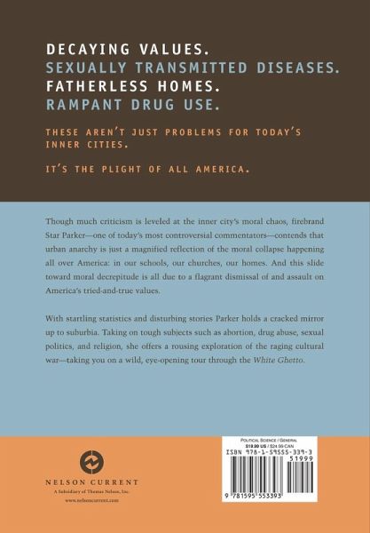Decaying values. Sexually transmitted diseases. Fatherless homes. Rampant drug use. These aren't just problems for today's inner cities. It's the plight of all America. Much has been said about Bill Cosby's incendiary remarks about urban black culture and its "dirty laundry." But in this provocative book, Star Parker, one of today's most controversial commentators, goes even further, proving that urban plight simply reveals a decay that is gnawing its way throughout American society as a whole. The sexual chaos, values disorientation, and social turmoil we see in our inner cities, Parker argues, is just a magnified reflection of the moral collapse happening all over America: in our schools, our churches, our homes. And this slide toward moral decrepitude is all due to a flagrant dismissal of and assault on America's tried-and-true values. With startling statistics and disturbing stories about the increasing secularization and criminalization of the middle class, Parker holds a cracked mirror up to suburbia. Taking on tough subjects such as abortion, drug abuse, sexual politics, and religion, she offers a rousing exploration of the raging cultural war-taking you on a wild, eye-opening tour through the White Ghetto. Star Parker is the founder and president of CURE, the Coalition on Urban Renewal & Education, a nonprofit organization that provides national dialogue on issues of race and poverty in the media, inner city neighborhoods, and public policy. Star is a regular commentator on CNN, MSNBC, Fox News, and the BBC, which reaches 300 million homes worldwide. Her articles and quotes have also appeared in major publications including the Wall Street Journal, the Washington Post, and the New York Times, and is currently a weekly syndicated columnist for Scripps Howard News Service. Star is the author of Pimps, Whores, and Welfare Brats and Uncle Sam's Plantation.