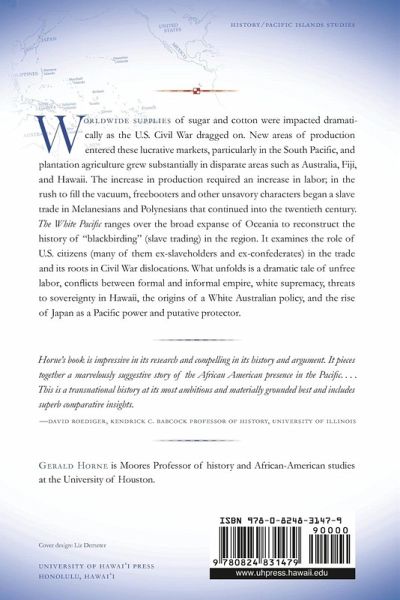 Worldwide supplies of sugar and cotton were impacted dramatically as the U.S. Civil War dragged on. New areas of production entered these lucrative markets, particularly in the South Pacific, and plantation agriculture grew substantially in disparate areas such as Australia, Fiji, and Hawaii. The increase in production required an increase in labor; in the rush to fill the vacuum, freebooters and other unsavory characters began a slave trade in Melanesians and Polynesians that continued into the twentieth century. The White Pacific ranges over the broad expanse of Oceania to reconstruct the history of "blackbirding" (slave trading) in the region. It examines the role of U.S. citizens (many of them ex-slaveholders and ex-confederates) in the trade and its roots in Civil War dislocations. What unfolds is a dramatic tale of unfree labor, conflicts between formal and informal empire, white supremacy, threats to sovereignty in Hawaii, the origins of a White Australian policy, and the rise of Japan as a Pacific power and putative protector. It also pieces together a wonderfully suggestive history of the African American presence in the Pacific. Based on deft archival research in Australia, New Zealand, Fiji, Hawaii, the United States, and Great Britain, The White Pacific uncovers a heretofore hidden story of race, labor, war, and intrigue that contributes significantly to the emerging intersectional histories of race and ethnicity.