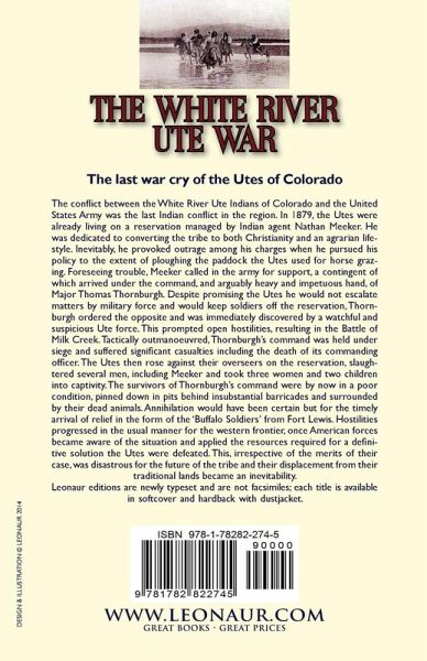 The last war cry of the Utes of Colorado The conflict between the White River Ute Indians of Colorado and the United States Army was the last Indian conflict in the region. In 1879, the Utes were already living on a reservation managed by Indian agent Nathan Meeker. He was dedicated to converting the tribe to both Christianity and an agrarian lifestyle. Inevitably, he provoked outrage among his charges when he pursued his policy to the extent of ploughing the paddock the Utes used for horse grazing. Foreseeing trouble, Meeker called in the army for support, a contingent of which arrived under the command, and arguably heavy and impetuous hand, of Major Thomas Thornburgh. Despite promising the Utes he would not escalate matters by military force and would keep soldiers off the reservation, Thornburgh ordered the opposite and was immediately discovered by a watchful and suspicious Ute force. This prompted open hostilities, resulting in the Battle of Milk Creek. Tactically outmanoeuvred, Thornburgh's command was held under siege and suffered significant casualties including the death of its commanding officer. The Utes then rose against their overseers on the reservation, slaughtered several men, including Meeker and took three women and two children into captivity. The survivors of Thornburgh's command were by now in a poor condition, pinned down in pits behind insubstantial barricades and surrounded by their dead animals. Annihilation would have been certain but for the timely arrival of relief in the form of the 'Buffalo Soldiers' from Fort Lewis. Hostilities progressed in the usual manner for the western frontier, once American forces became aware of the situation and applied the resources required for a definitive solution the Utes were defeated. This, irrespective of the merits of their case, was disastrous for the future of the tribe and their displacement from their traditional lands became an inevitability. Leonaur editions are newly typeset and are not facsimiles; each title is available in softcover and hardback with dustjacket.