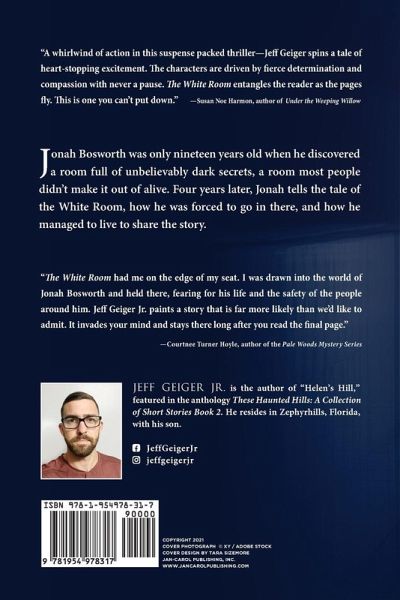 The author spins a tale of excitement. Jonah Bosworth was only nineteen years old when he discovered a room full of unbelievably dark secrets, a room most people didn't make it out of alive. Four years later, Jonah tells the tale of the White Room, how he was forced to go in there, and how he managed to live to share the story.