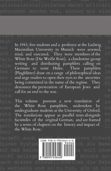 In the early 1940s, 5 students and a professor secretly wrote and distributed pamphlets calling on Germans to resist Hitler. This book presents facsimiles and transcriptions of the original pamphlets alongside a new collaborative translation by students. A series of essays by experts on the White Rose examines the group members' lives and legacy.