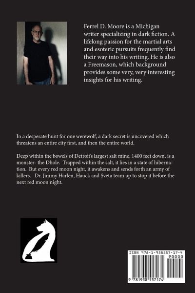 In a desperate hunt for one werewolf, a dark secret is uncovered which threatens an entire city first, and then the entire world. Deep within the bowels of Detroit's largest salt mine, 1400 feet down, is a monster- the Dhole. Trapped within the salt, it lies in a state of hibernation. But every red moon night, it awakens and sends forth an army of killers. Dr. Jimmy Harlen, Hauck and Sveta team up to stop it before the next red moon night.
