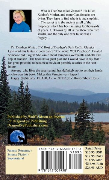 The White Wolf Prophecy was long known by the Clan of O'Hara - except for Kaitlan O'Hara. Kaitlan was an editor for Seneca Publishing House owned by her Father, Canaan. Knowing that her life was in danger from an enemy by the name of Zanack, Canaan sent Kaitlan to edit the book of their best-selling author, Cordone Valon, who lives deep in the Rocky Mountains in Colorado. Kaitlan was not looking forward to it . Or as Kaitlan so colorfully puts it: "Forget 'Neverland'. This was a trip into 'Nowhereland'." She resented her Father insisting she go to the one man she despised above all others. Yet, she had never met him in person! And, worse? She was sent the day before her birthday! Her twenty-seventh birthday marks her entrance into the supernatural world of which she had no knowledge. When Canaan is murdered, Cordone is left with having to tell Kaitlan about who she really is. Their passion is all consuming. Their mating, fast and furious. From the moment she discovered who, and what, she was, everything changed. In order for the prophecy to come true, and an ancient "curse" broken, Kaitlan, and her three best friends, Sarah, Anita, and Lynne, must mate. Who is The One called Zanack? He killed Kailtan's Mother, and more Clan females are dying. They have to find who it is and stop him. The secret is in the ancient scroll of the Prophecy which has been missing for thousands of years. Unknown by all is that there were two scrolls, and the only one ever found was a forgery....