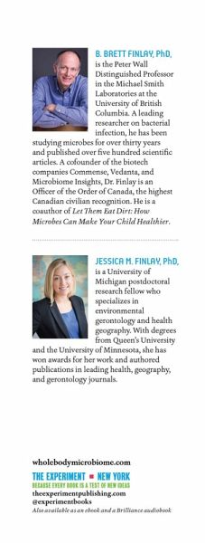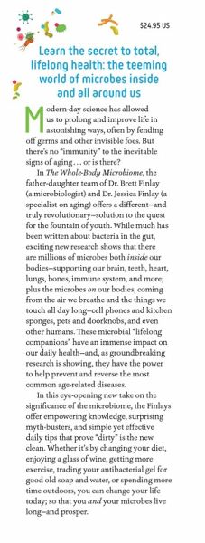 Modern-day science has allowed us to prolong and improve life in astonishing ways, often by fending off germs and other invisible foes. But there's no "immunity" to the inevitable signs of aging . . . or is there? In The Whole-Body Microbiome, the father-daughter team of Dr. Brett Finlay (a microbiologist) and Dr. Jessica Finlay (a specialist on aging) offers a different-and truly revolutionary-solution to the quest for the fountain of youth. While much has been written about bacteria in the gut, exciting new research shows that there are millions of microbes both inside our bodies-supporting our brain, teeth, heart, lungs, bones, immune system, and more; plus the microbes on our bodies, coming from the air we breathe and the things we touch all day long-cell phones and kitchen sponges, pets and doorknobs, and even other humans. These microbial "lifelong companions" have an immense impact on our daily health-and, as groundbreaking research is showing, they have the power to help prevent and reverse the most common age-related diseases. In this eye-opening new take on the significance of the microbiome, the Finlays offer empowering knowledge, surprising myth-busters, and simple yet effective daily tips that prove "dirty" is the new clean. Whether it's by changing your diet, enjoying a glass of wine, getting more exercise, trading your antibacterial gel for good old soap and water, or spending more time outdoors, you can change your life today; so that you and your microbes live long-and prosper.