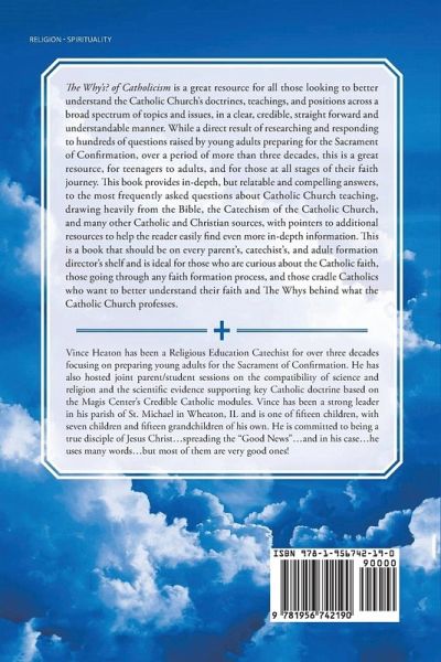 The Why's? of Catholicism is a great resource for all those looking to better understand the Catholic Church's doctrines, teachings, and positions across a broad spectrum of topics and issues, in a clear, credible, straight forward and understandable manner. While a direct result of researching and responding to hundreds of questions raised by young adults preparing for the Sacrament of Confirmation, over a period of more than three decades, this is a great resource, for teenagers to adults, and for those at all stages of their faith journey. This book provides in-depth, but relatable and compelling answers, to the most frequently asked questions about Catholic Church teaching, drawing heavily from the Bible, the Catechism of the Catholic Church, and many other Catholic and Christian sources, with pointers to additional resources to help the reader easily find even more in-depth information. This is a book that should be on every parent's, catechist's, and adult formation director's shelf and is ideal for those who are curious about the Catholic faith, those going through any faith formation process, and those cradle Catholics who want to better understand their faith and The Whys behind what the Catholic Church professes. ¿