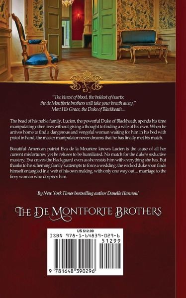 "The bluest of blood; the boldest of hearts; the de Montforte brothers will take your breath away." When the powerful Lucien de Montforte, the Duke of Blackheath, arrives home to find a dangerous and vengeful woman waiting for him in his bed with pistol in hand, the master manipulator never dreams that he has finally met his match. But thanks to his scheming family's successful attempts to force a wedding, the wicked and wily duke finds himself entangled in a web of his own making in this spectacular conclusion to Danelle Harmon's critically acclaimed de Montforte Brothers series!