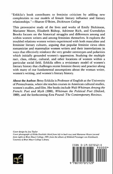This provocative study of the lives and works of Emily Dickinson, Marianne Moore, Elizabeth Bishop, Adrienne Rich, and Gwendolyn Brooks focuses on the historical struggles and differences among and within women writers and among feminists themselves.