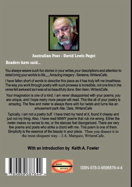 Edgar Allan Poe is considered by many to be the premier writer of the macabre, both in story and in poetry. Yet it is my pleasure to introduce to you the man who continues where Poe left off. David Lewis Paget is an accomplished Australian Poet. His narrative poems are of such high quality both in rhyme and meter that there are few his equal. Over the past forty years or more, David Lewis Paget has honed his skill as a Narrative Poet to such a degree that his ability to scare and yet also touch the heart are as sharp as any knife. I became acquainted with David's writings only a year ago while searching for a good volume of poems to read during October, and was considering more of Edgar Allan Poe's work when a copy of "The Devil on the Tree & Other Poems of Dysfunction" appeared on the internet. I took a chance on it, read it in one sitting, cover to cover, and found myself chilled to the bone. Read this one for yourself, and see. (Keith A. Fowler)